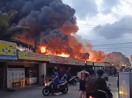 Kobaran api dengan cepat membesar dan menyapu kawasan yang dikenal ramai aktivitas kuliner tersebut. Kepulan asap hitam pekat membumbung tinggi ke udara dan terlihat dari jarak jauh, memicu kepanikan warga sekitar.